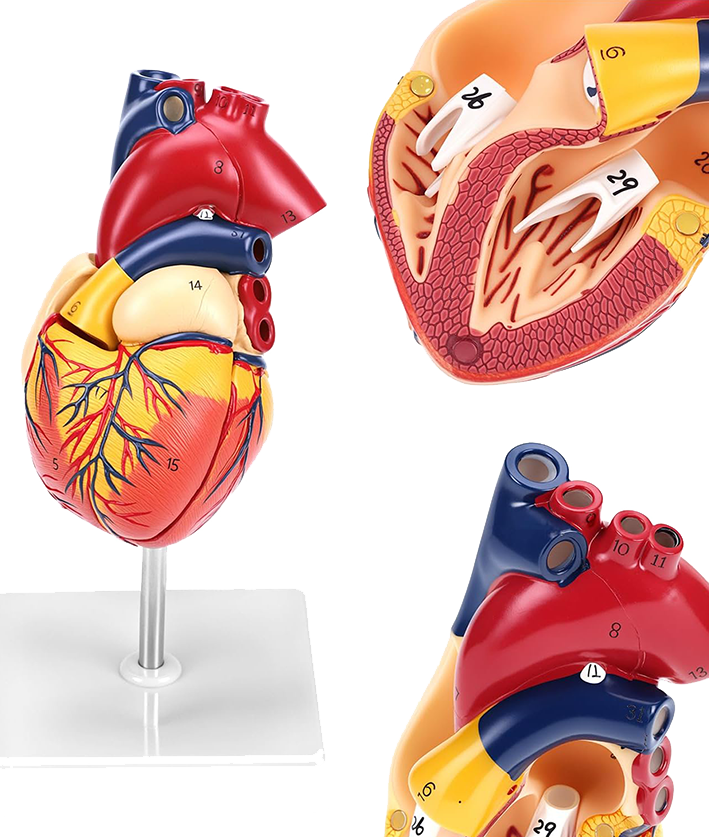 QWORK® Modelo del Corazón Humano de Tamaño Natural, Modelo Científico 2 Partes con 34 Marcas Anatómicas, para Lecciones de Medicina.