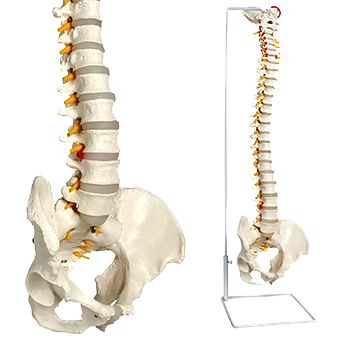 Modelo de columna vertebral flexible de tamaño natural, modelo anatómico masculino de 33 pulgadas (85 cm) con médula espinal flexible, vértebras, nervios, arterias, lumbares, pelvis y soporte